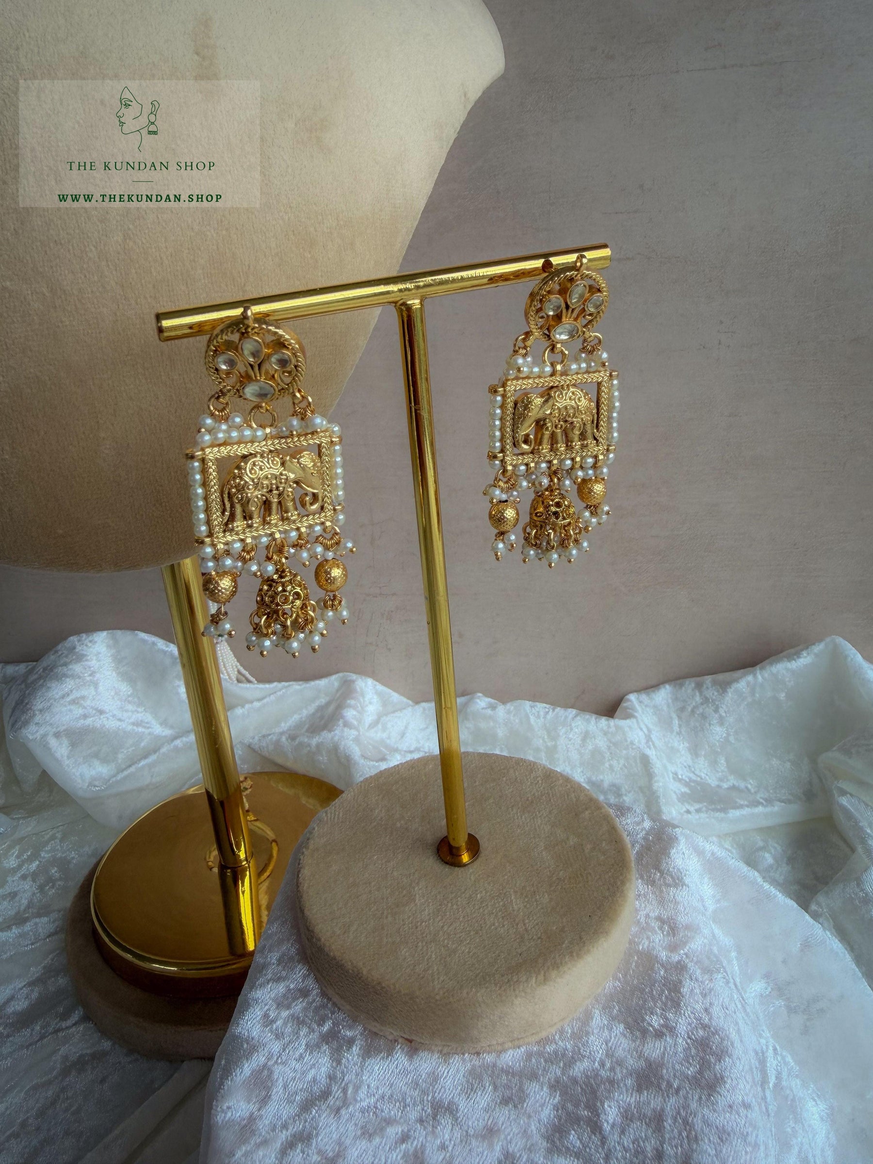 Beautiful antique necklace with stunning statement earrings, detailed with elephants.